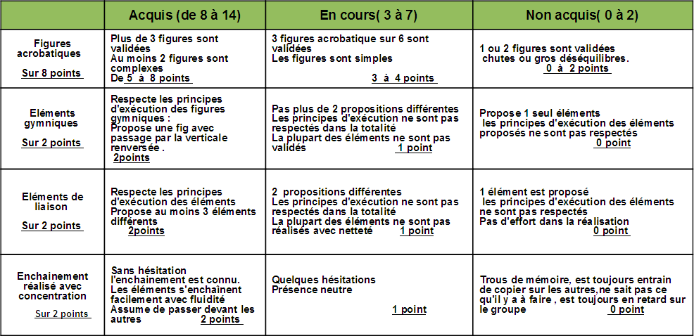 Compétences attendues en Acrosport au niveau 2
