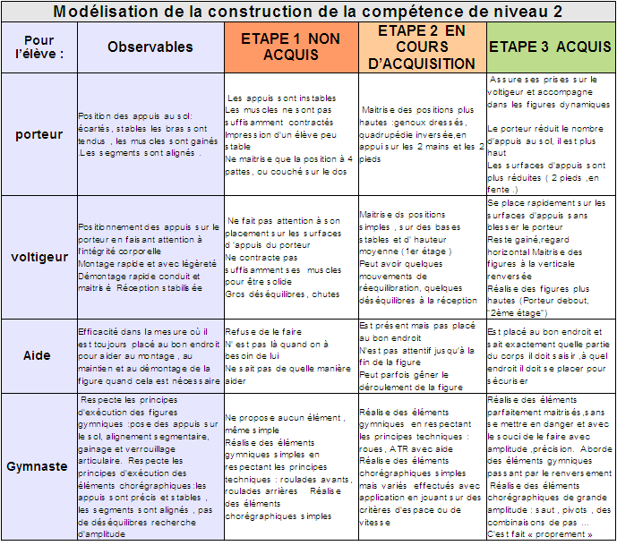 Passages obligés pour définir les capacités de référence en Acrosport associés aux rôles déterminés