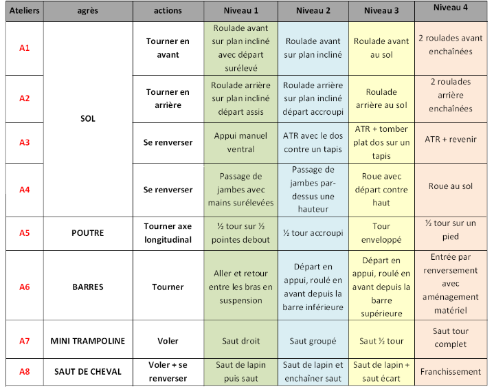 Définition de seuils d'exigence pour la validation de la compétence de niveau 1 en gymnastique sportive :