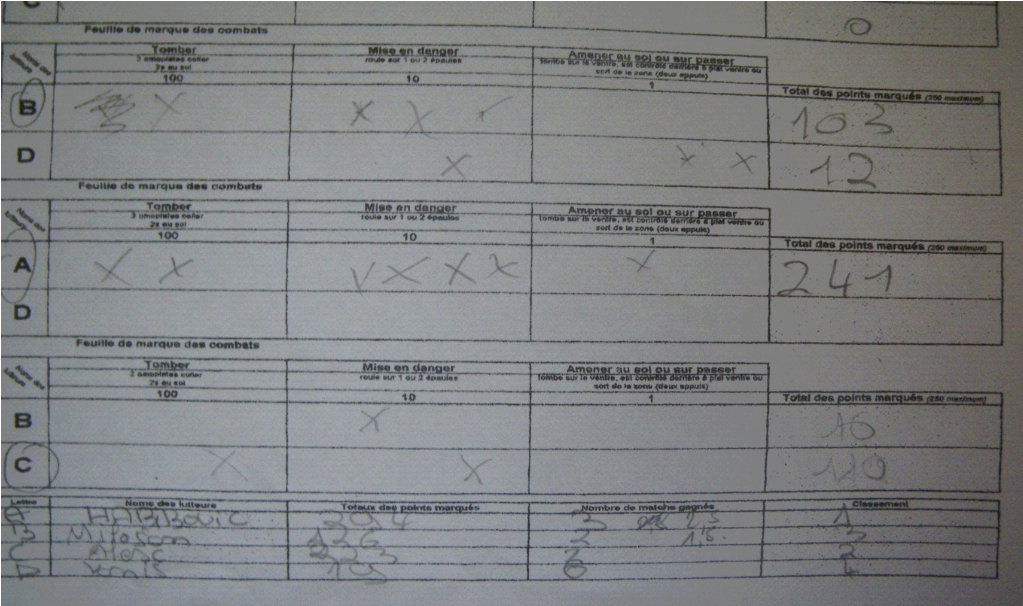 Résultats d'une feuille de combat (avec quelques erreurs)